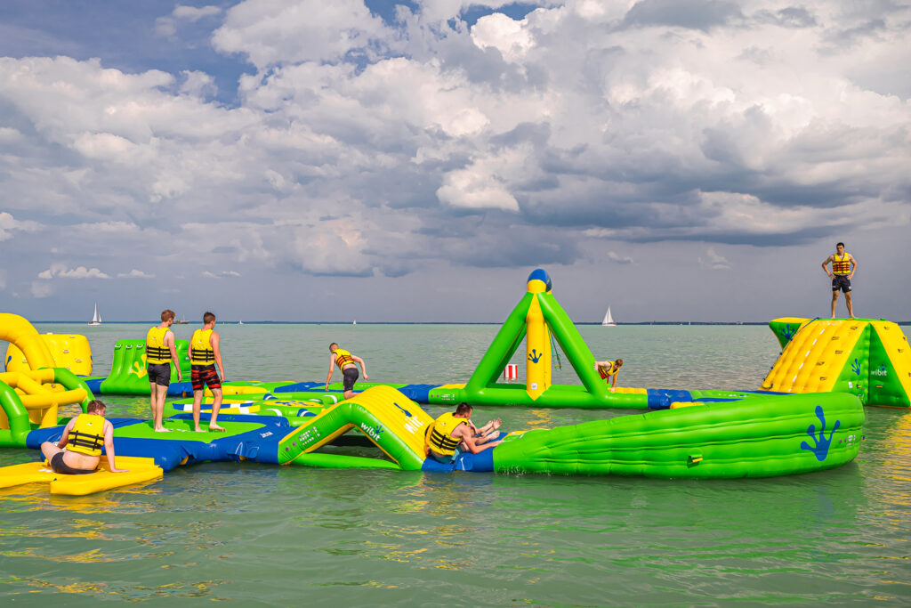 Izgalmas wibit pályákat találunk a balatonfüredi Danubius Hotel Marina saját strandján, a csopaki strandon, Siófokon, Balatonlellén, Balatonkenesén.
