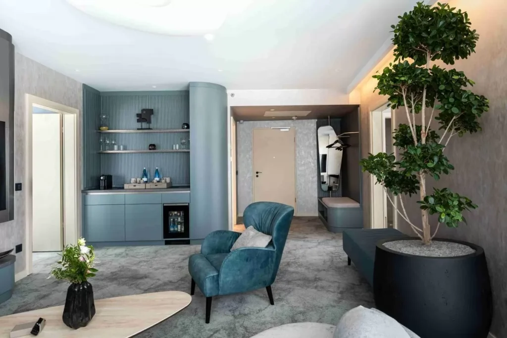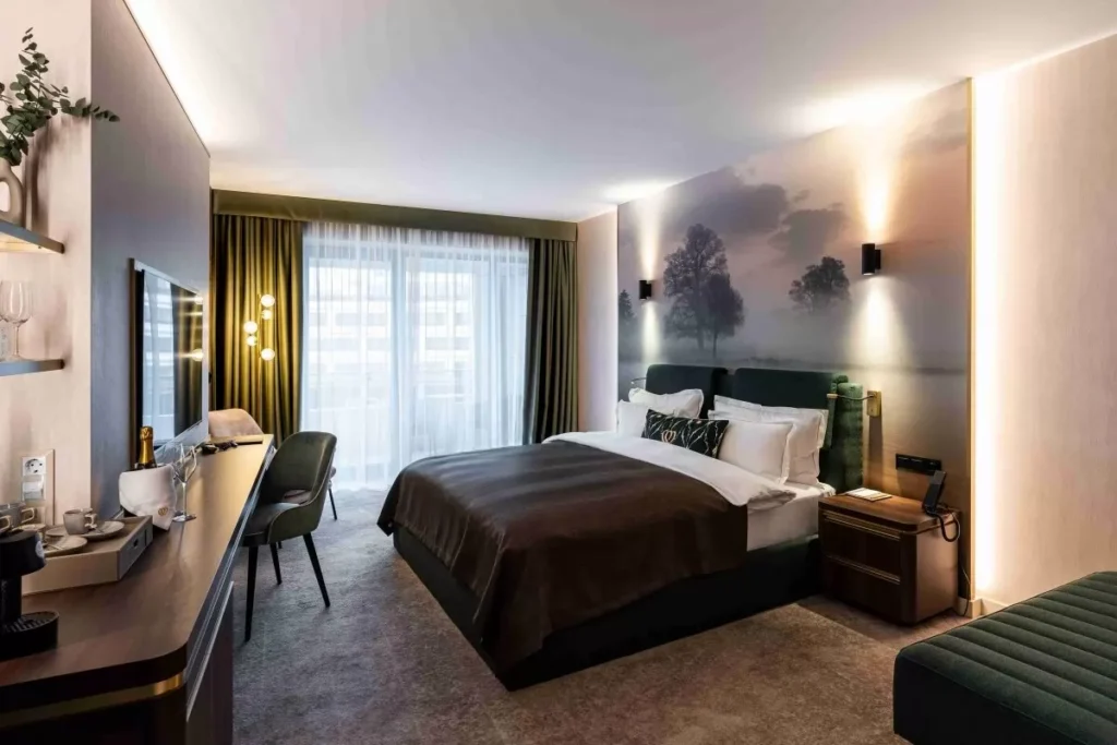 Igazi különlegességnek számít a hazai szállodakínálatban egyedülálló hét darab prémium penthouse lakosztály, amely a hotel legfelső szintjén található, privát tetőkerttel, jakuzzival és hatalmas intim terekkel.