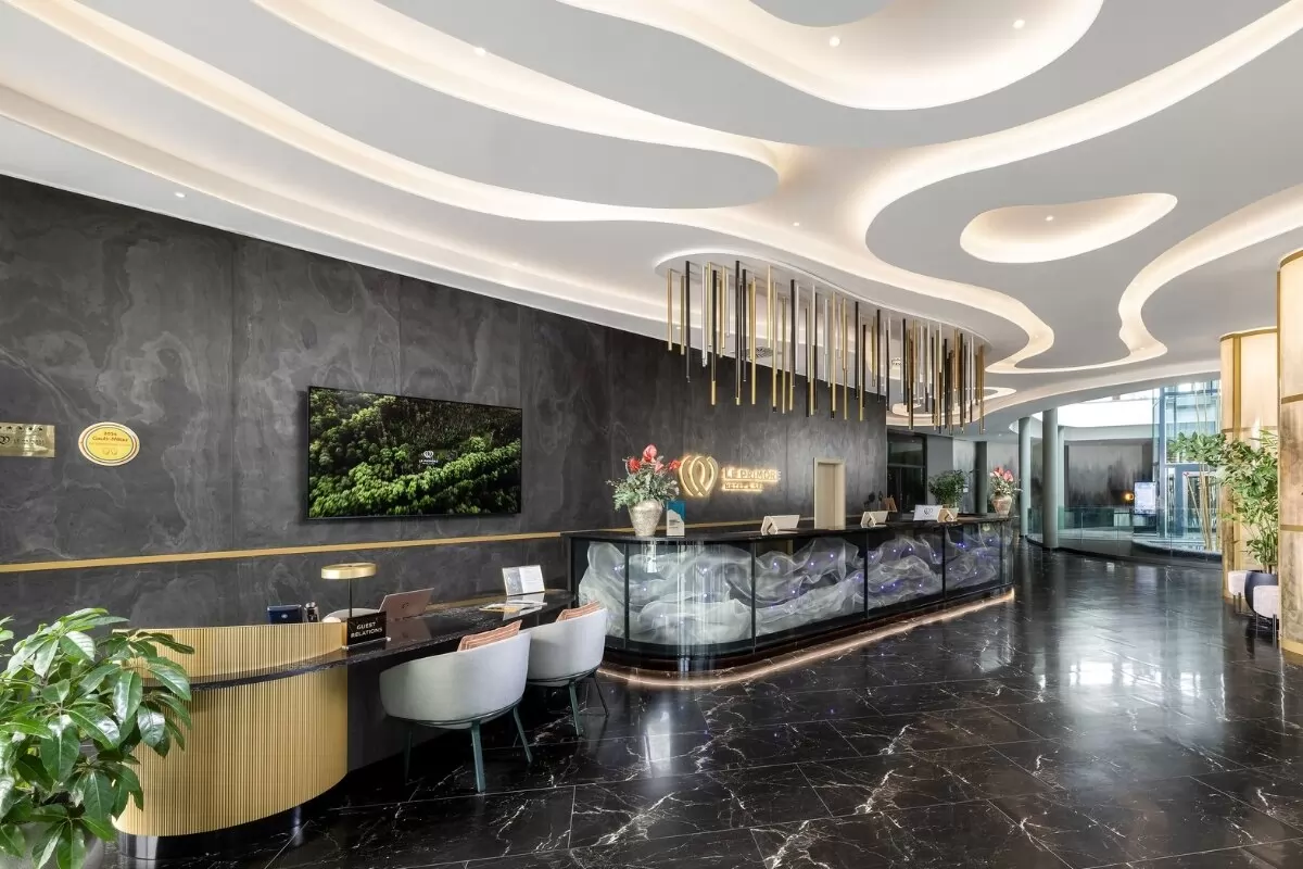 A lobbyban “ gőzölgő” hévízi tavirózsák, az enteriőr olívazöld, bézs és lágy zöld árnyalatai azonnal a már ismert harmonikus és letisztult világba repítettek minket – ahol az elegancia nem hivalkodó, hanem az igényességből és a minden részletre kiterjedő figyelmességből fakad.