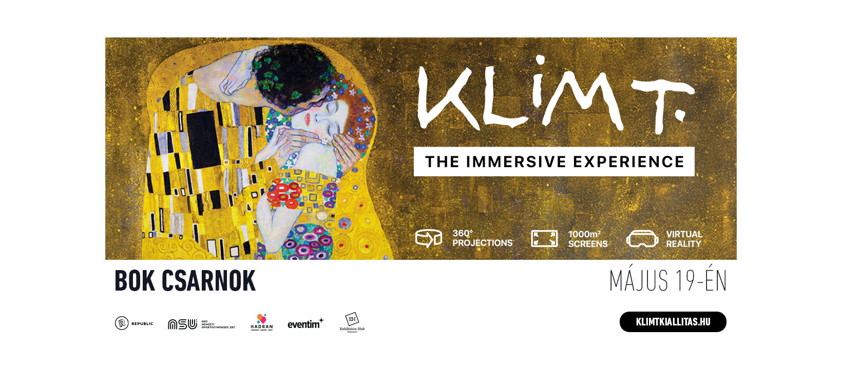 A művészetre fogékony nagyobb gyerekeket, és persze szüleiket a bécsi szecesszió mesterét, Gustav Klimtet és munkásságát bemutató interaktív kiállítás várja a BOK csarnokban. Beléphetünk a térben újraalkotott mesterművekbe, áthaladhatunk az arany folyosón, hogy azután az immerzív vetítés kellős közepén pihenjünk le, vagy a virtuális valóságban merüljünk el a fantasztikus alkotásokban.