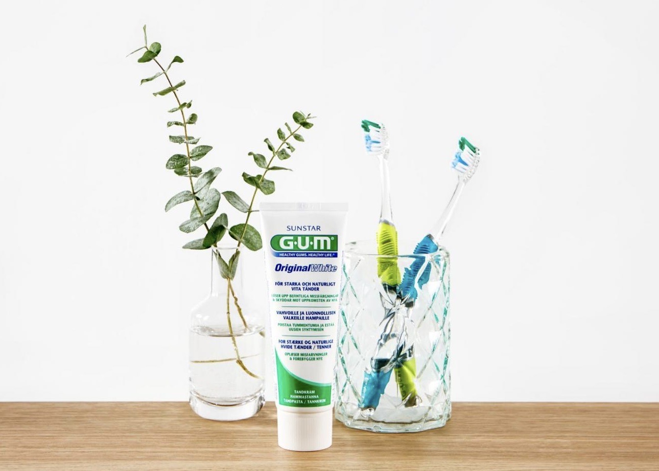 A szabadalmaztatott, mikrogyöngyökkel tisztító GUM Original White fogkrém segít helyreállítani a fogak természetes fehérségét. Rendszeres GUM® Original White fogkrém használattal hatékonyan távolítható el a fogak elszíneződése, emellett segít a fogzománc remineralizációjában a megnövelt fluorid tartalomnak köszönhetően. A szabadalmaztatott StainClear formula szétbomlasztja a pigmentációt még a fogzománc mélyebb repedéseiben is és megakadályozza annak további kialakulását.