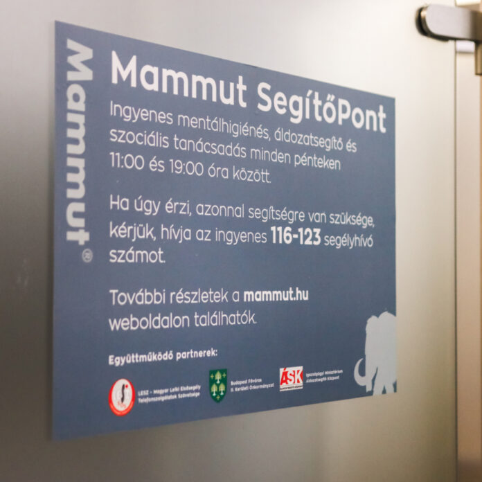 A Lelki Egészség Világnapján különleges SegítőPont nyílt a Mammut Bevásárlóközpontban. A kezdeményezés a Mammut önkéntes társadalmi szerepvállalása részeként jött létre civil lelkisegély-szervezetekkel, valamint Budapest Főváros II. Kerület Önkormányzatával és az Áldozatsegítő Központtal együttműködésben. A Mammut SegítőPonton az ingyenes lelki segítségnyújtás és mentálhigiénés prevenció mellett, szociális és áldozatsegítő szolgáltatás is elérhető 2023. október 13-tól.