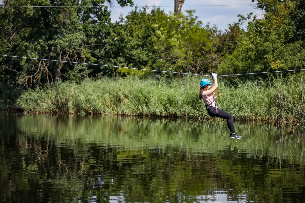 A bükfürdői Kristály Toronynál tovább folytatódhat az aktív kikapcsolódás: a kalandpark hazánkban egyedülálló, 3 szinttel és 90 különböző elemmel kínál felejthetetlen adrenalinélményt. A park már 3 éves kor felett élvezetes a Mini Kristály Torony Kötélpályájával, de a tinédzsereken át a felnőttek számára is tartogat izgalmas akadályokat. Tegyétek próbára ügyességeteket a gigantikus mászófalon vagy a kötélpálya különböző magasságú szintjein, éljétek át a szabadesés mámorító élményét az óriáshintán! Emellett focizásra is van lehetőségetek a színvonalas műfüves pályán, és még az íjászatot is kipróbálhatjátok.