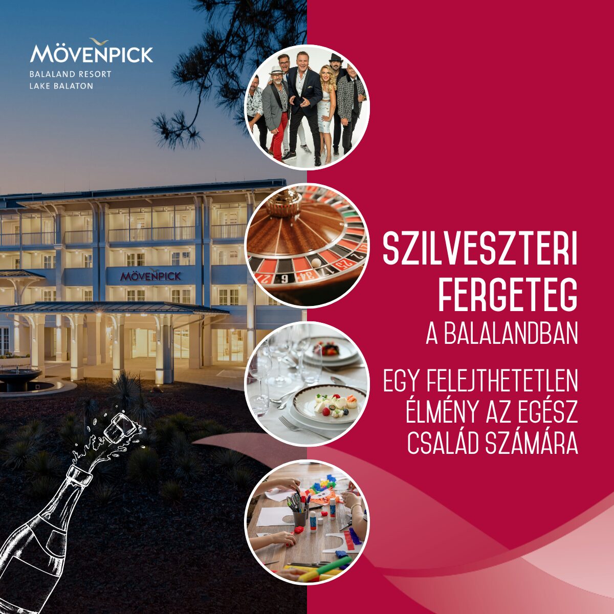 A Mövenpick Balaland Resort kellemes és minőségi kikapcsolódást ígér a bekuckózós téli napokon is. Élőzenés koncertek, DJ műsor, minőségi italkóstolók neves szakemberek vezetésével, tematikus vacsorák és varázslatos téli hangulat vár minket a Balaton déli partján.