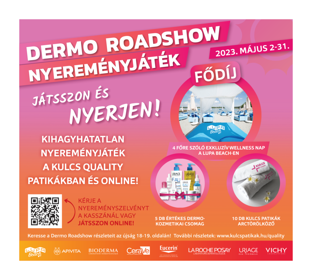 ONLINE JÁTÉK MÁJUS 2-31. KÖZÖTT: https://kulcspatikak.hu/dermoroadshow2023