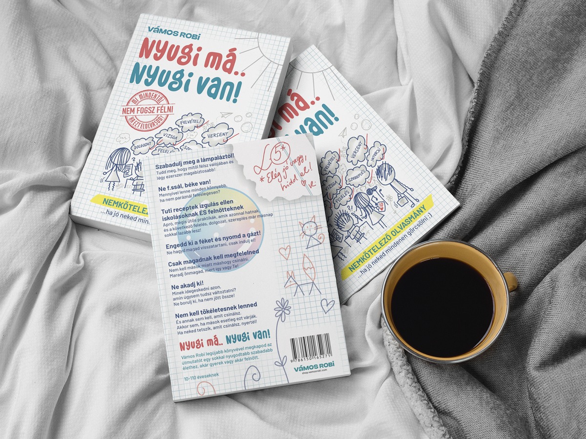 Vámos Robi legújabb, hiánypótló szerzeménye mindazoknak segít, akik úgy érzik, túl sokat aggodalmaskodnak. A „Nyugi má.. Nyugi van!” című kötet a félelmekről, iskolai szorongásról és azok leküzdéséről szól gyerekeknek és felnőtteknek egyaránt.